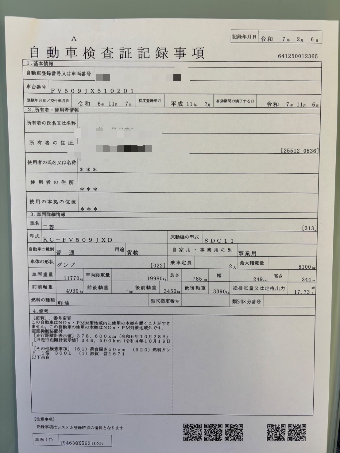 - Mileage: 378,600 km (as of Oct 2, 2024)